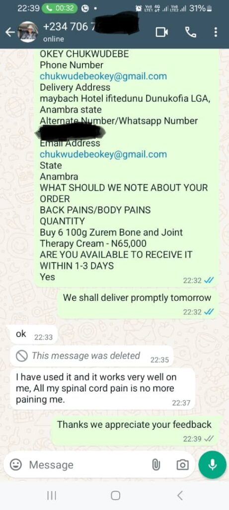 After just one week of using the cream, I could already feel the difference. My feet were warm and the blood flow was fast, and the swelling was starting to go down. After six weeks of use, the joint inflammation and pain had disappeared, my bones were healthy and the deformed joints returned to their original shape. I was so relieved to have found something that actually worked, and I was determined to tell everyone I knew about this orthopedic superstar." - Mr Akinsanya , 43, Akure, Ondo State.