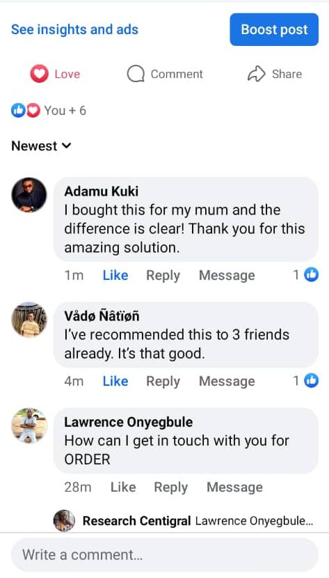 āThe results were unexpected. Today. in April. a lump suddenly appeared on my elbow. After seeing my doctor. I was diagnosed with bursitis and she recommended this cream to me. She has a lot of experience in treating bursitis and helping other patients with similar problems. so she was confident in the effectiveness of this product. I used it daily and after about 22 days I saw the results I wanted. My elbow is now back to normal and the problem has not recurred.āĀ ā Silas Emanuel. Imo State.